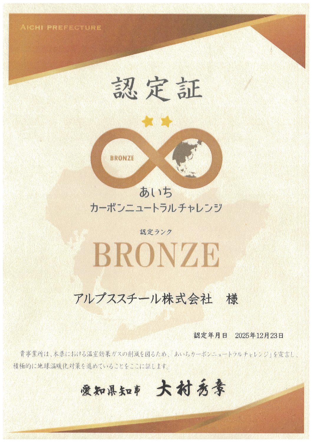 あいちカーボンニュートラルチャレンジ 『ブロンズ』取得 -